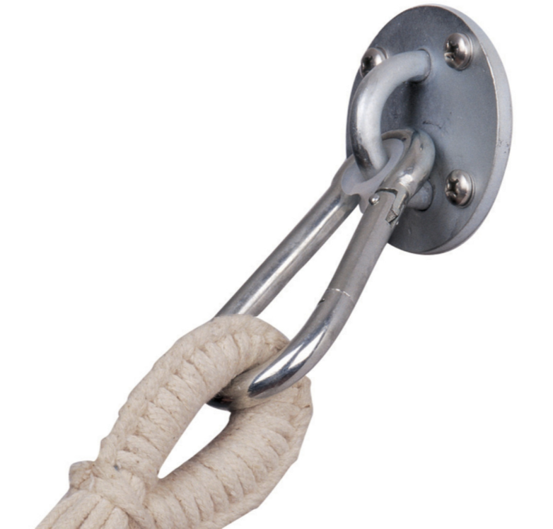 Questo gancio è ideale per appendere amache e amache sedute. comprende il gancio e 4 tasselli per fissarlo. Verificare la tenuta del soffitto prima di scegliere la tipologia di fissaggio. PORTATA MASSIMA: 150 kg