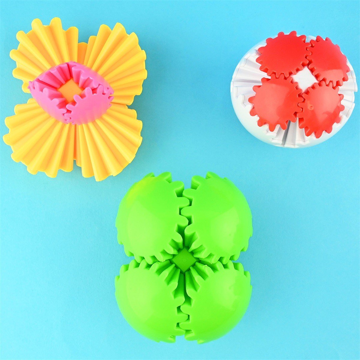 Questo fidget è una palla a ingranaggi che ruotando modificano la forma della sfera.