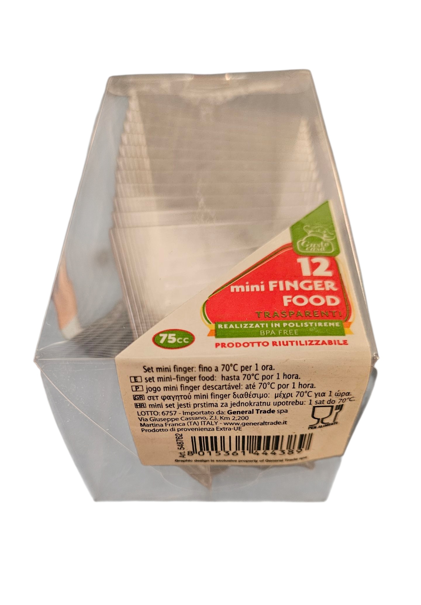 • Praticità: Coppette in polistirene riutilizzabili, ideali per servire snack, dolci o altri alimenti.
