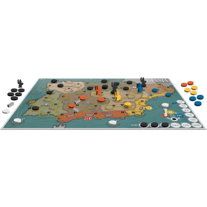 HISPANIA è un gioco cooperativo di Miguel Marquéz (autore di Tetrarchia!) in cui da 1 a 3 giocatori assumono il ruolo dei pretori e consoli che Roma inviò nella penisola spagnola nel corso di due secoli. Il tuo obiettivo sarà quello di sottomettere tutti i popoli della penisola prima della fine del millennio per incorporare l’Ispania nel prossimo impero, emulando il primo imperatore Cesare Augusto.