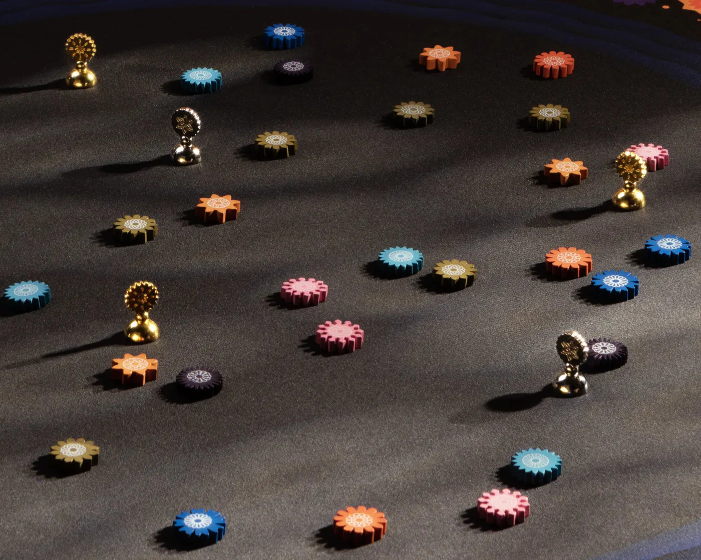 Lacuna è un gioco per 2 giocatori che consiste nel raccogliere fiori su uno stagno di notte. Si prepara in pochi secondi e si gioca interamente su un tappetino di stoffa. Le regole sono semplici: traccia una linea immaginaria tra 2 fiori, posiziona una pedina e raccogli entrambi i fiori.