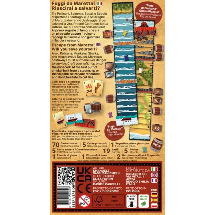 Una irriverente fuga dall’Isola di Maretta. Corsa e Set Collecting in una doppia avventura. Gira la plancia per scoprire Fuga da Vulcano.