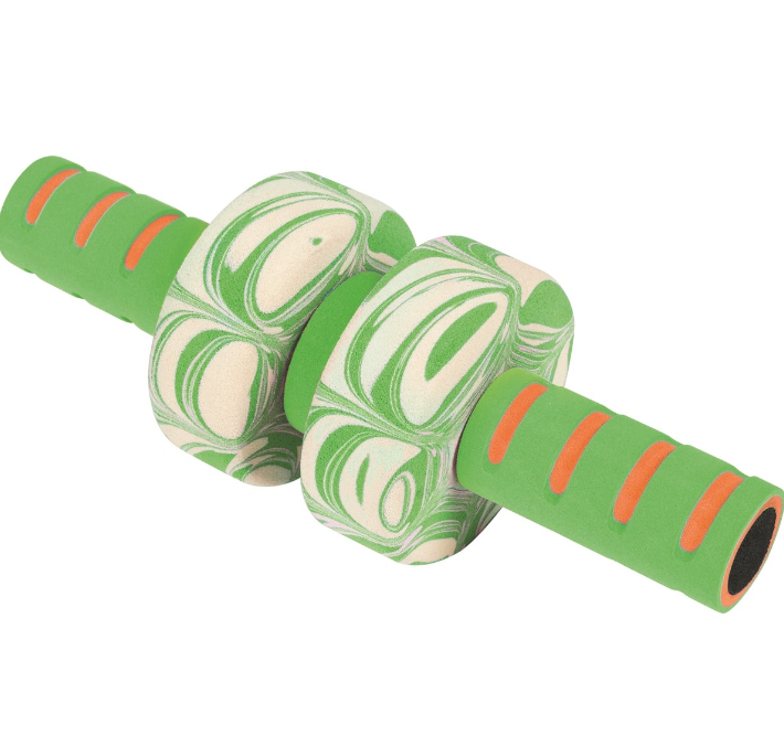 Un’asta nel mezzo e due prese laterali per le mani, un po’ come un matterello, una parte centrale che ruota e crea un piacevole massaggio e pressione. Ideale negli studi di terapia come a casa, in special modo per aumentare la propriocezione o rilassare.