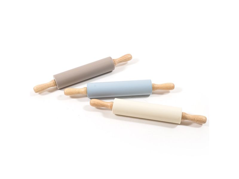 Mattarello in legno e silicone Lunghezza 30 cm   –   Diametro 4,5 cm In tre colori