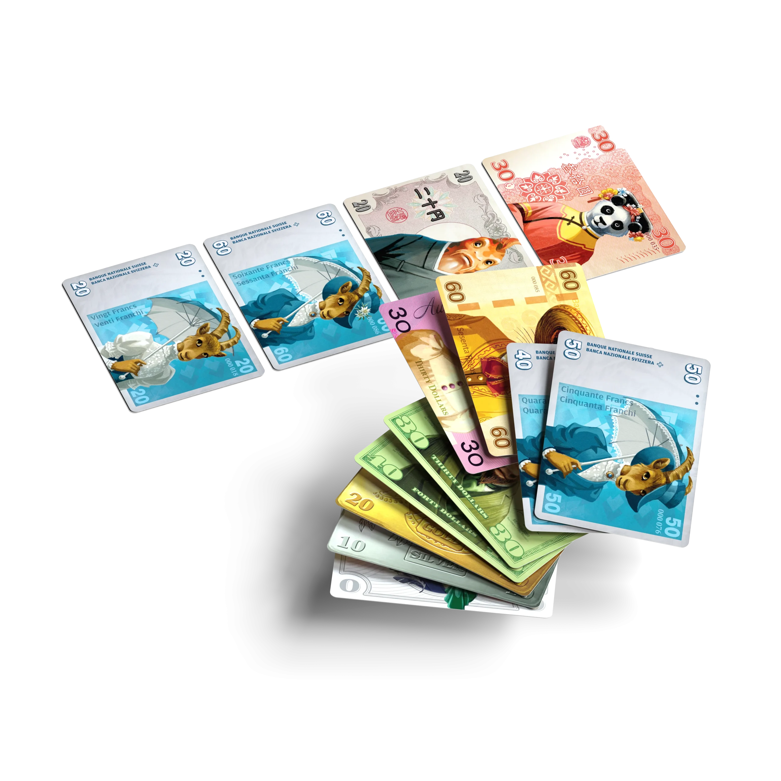 L’obiettivo di Money! è quello di scambiare le valute con la banca e con gli altri giocatori in modo da ottenere un valore superiore a quello degli altri. Ogni giocatore inizia con una mano di sei carte tratte da un mazzo che contiene carte di sette valute di valore compreso tra 20 e 60, insieme […]