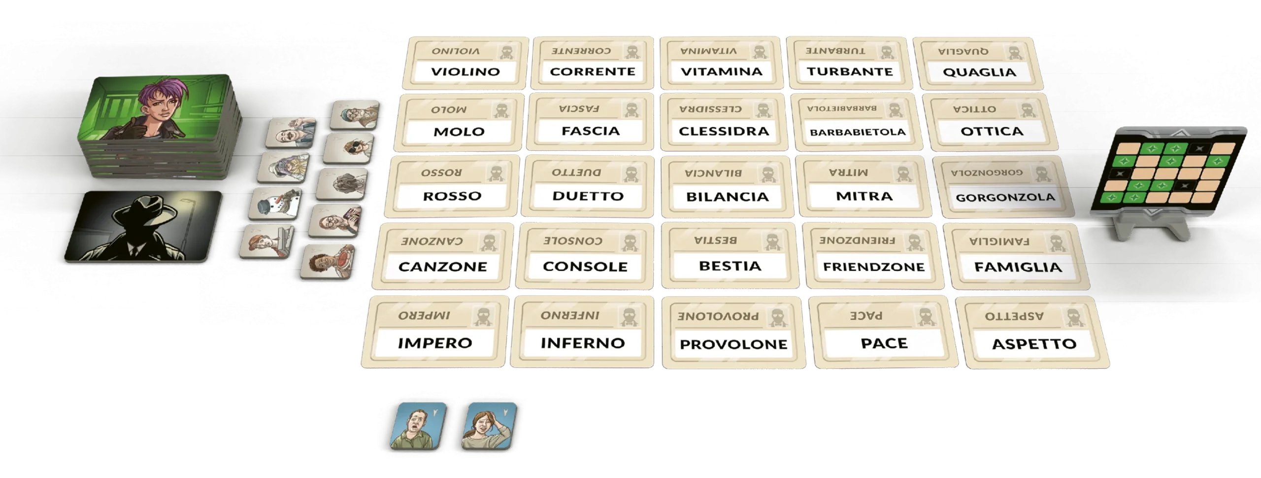 Scopri i 15 agenti prima che scada il tempo, evitando di rivelare l’assassino. Perfetto per due giocatori, ma godibile anche in partite di gruppo per chi cerca un’esperienza meno competitiva rispetto al Nome in Codice originale.