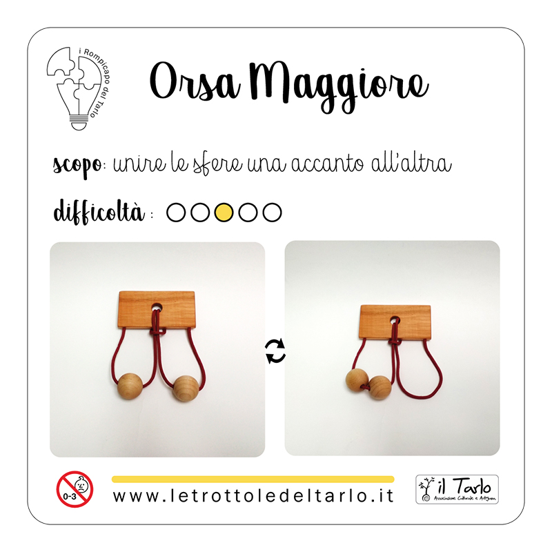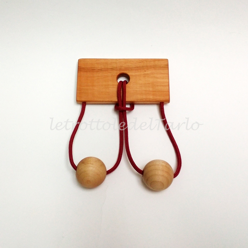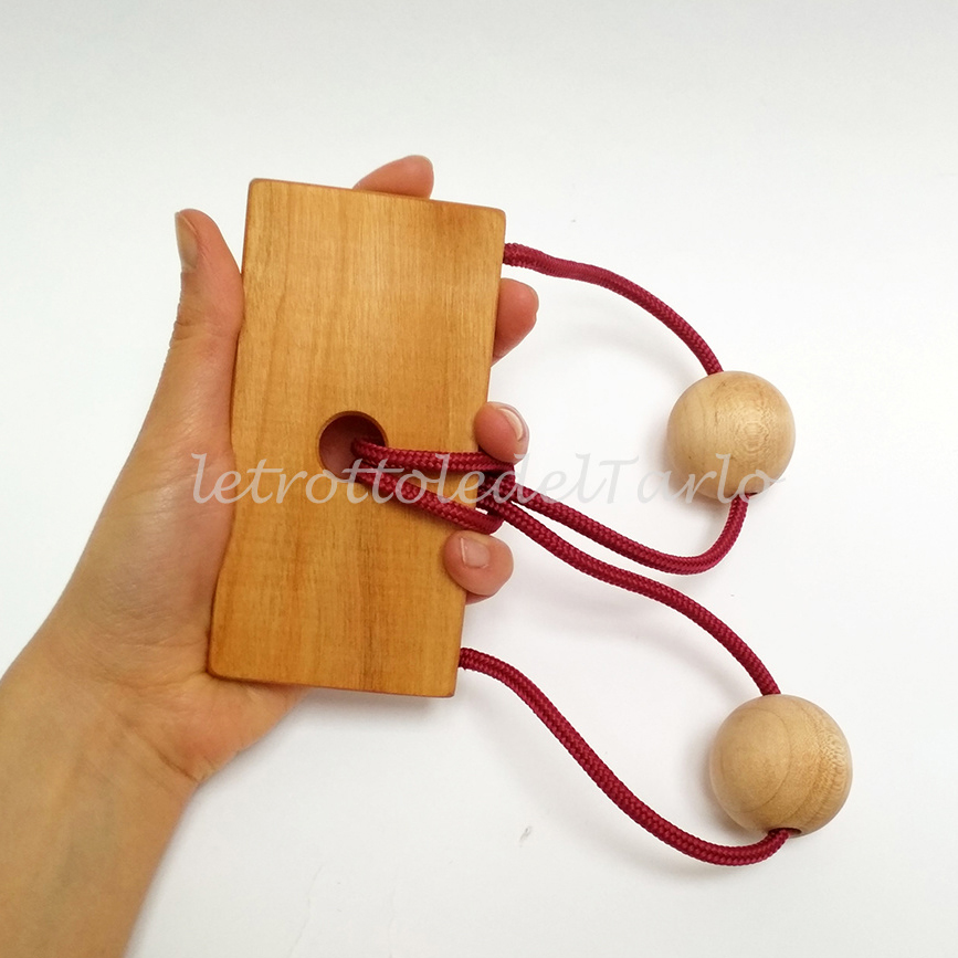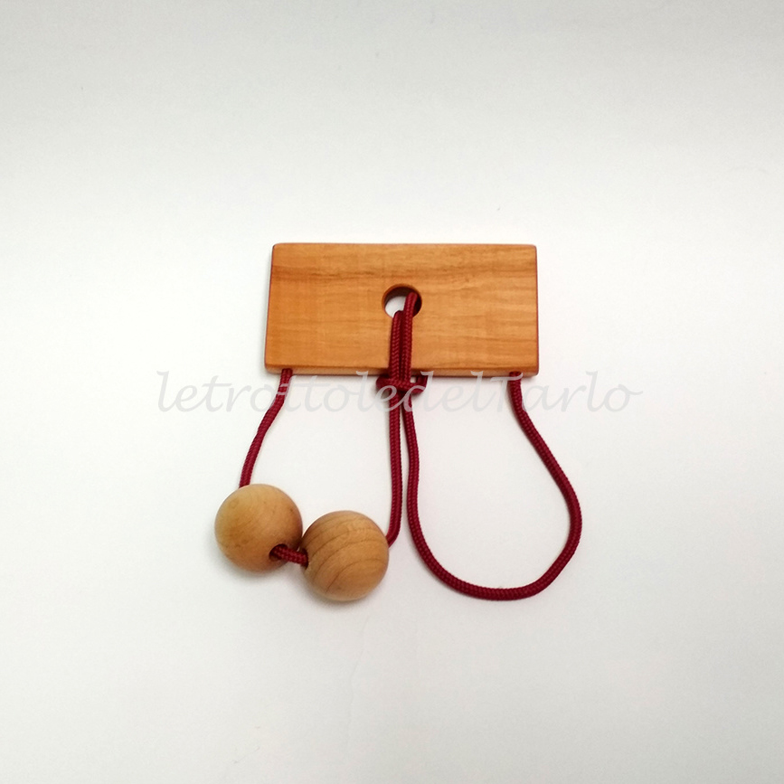 MATERIALI: legno varie essenze: ciliegio, acero e faggio. Corda in nylon. Sacchetto in cotone