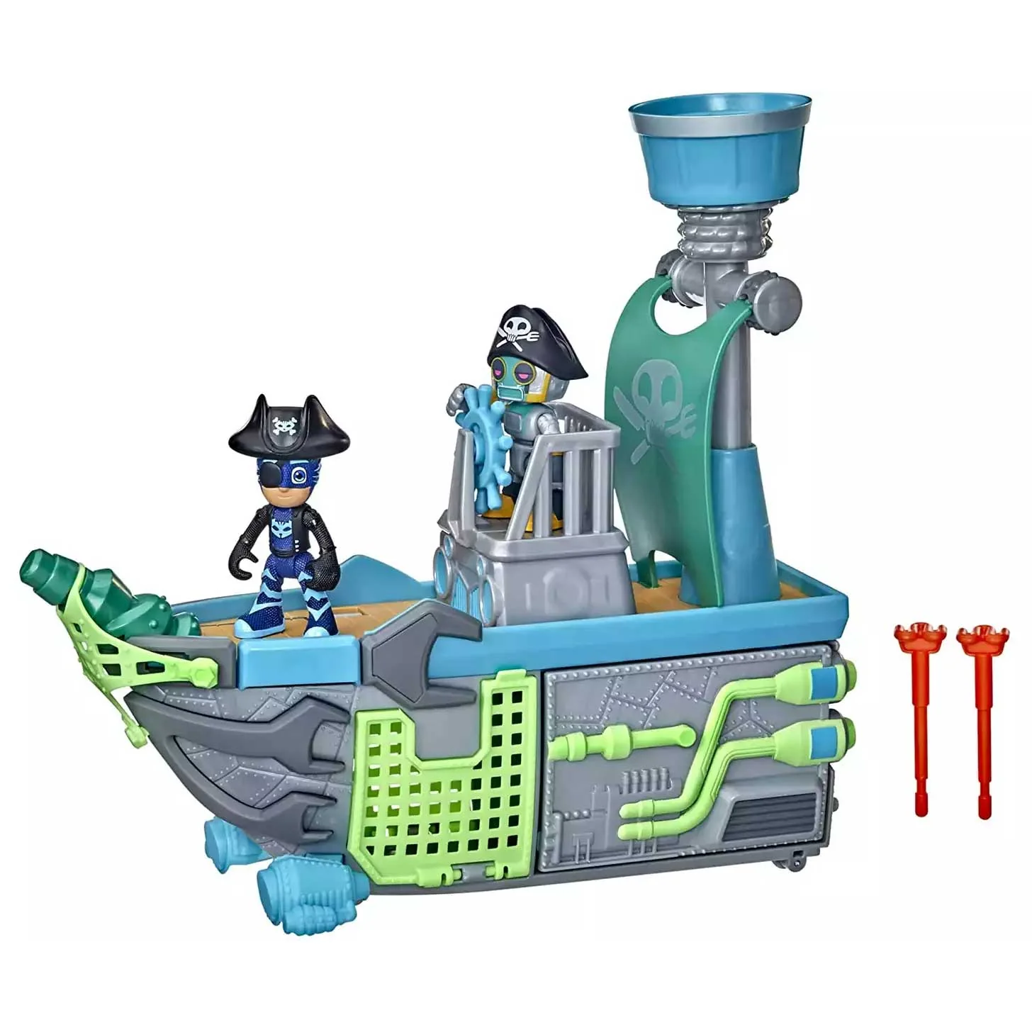 Questo playset con veicolo ricco di azioni di PJ Masks – Super pigiamini presenta tanto divertimento a tema pirati ispirato alla serie “PJ Masks – Super pigiamini”!