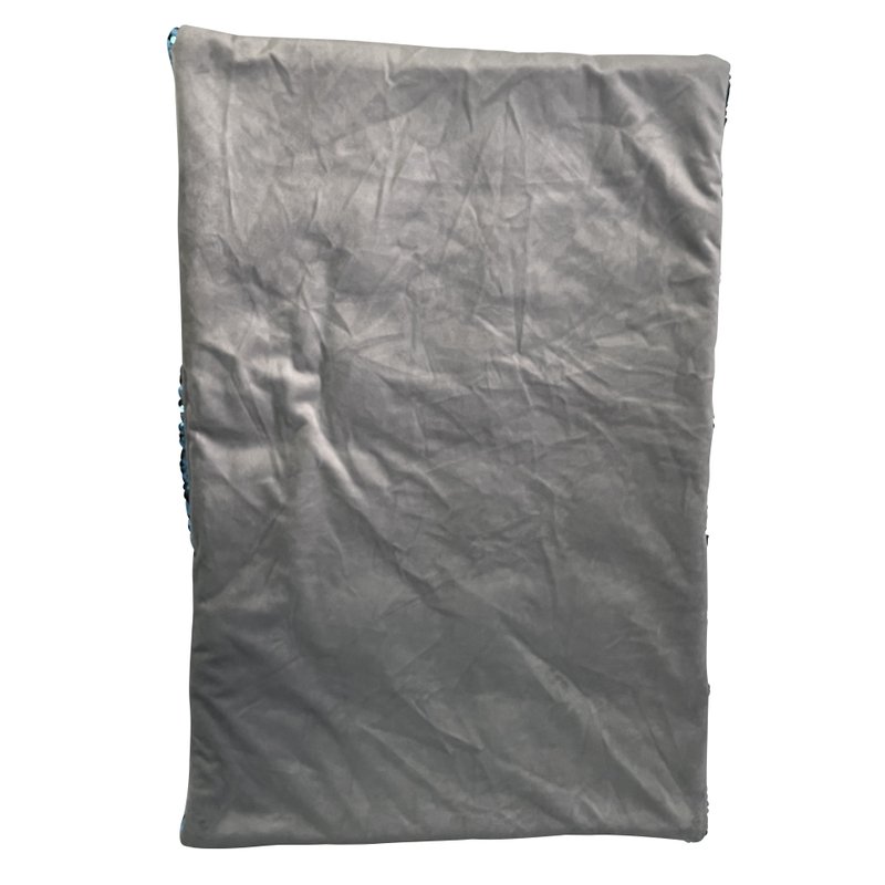 A questo è stato aggiunto un elemento fidget sia tattile che visivo, che permette di disegnare, scrivere e creare con le paillettes bicolore, che aiutano a calmare le ansie o a tenere le mani occupate aiutandole a concentrarsi sull’ambiente circostante. L’altro lato presenta un tessuto morbito, peloso e caldo color grigio chiaro.