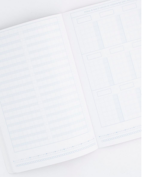 Il quaderno SUPER QUADRETTI 2 è stato studiato per favorire la letto-scrittura dei numeri interi entro il 100, l’incolonnamento e la procedura del calcolo in colonna, le strategie di calcolo a mente.