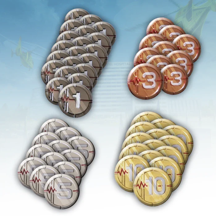 Questo set di monete in metallo smaltate renderanno ancora più immersive le tue partite a Royal Hospital. Questo Set comprende: