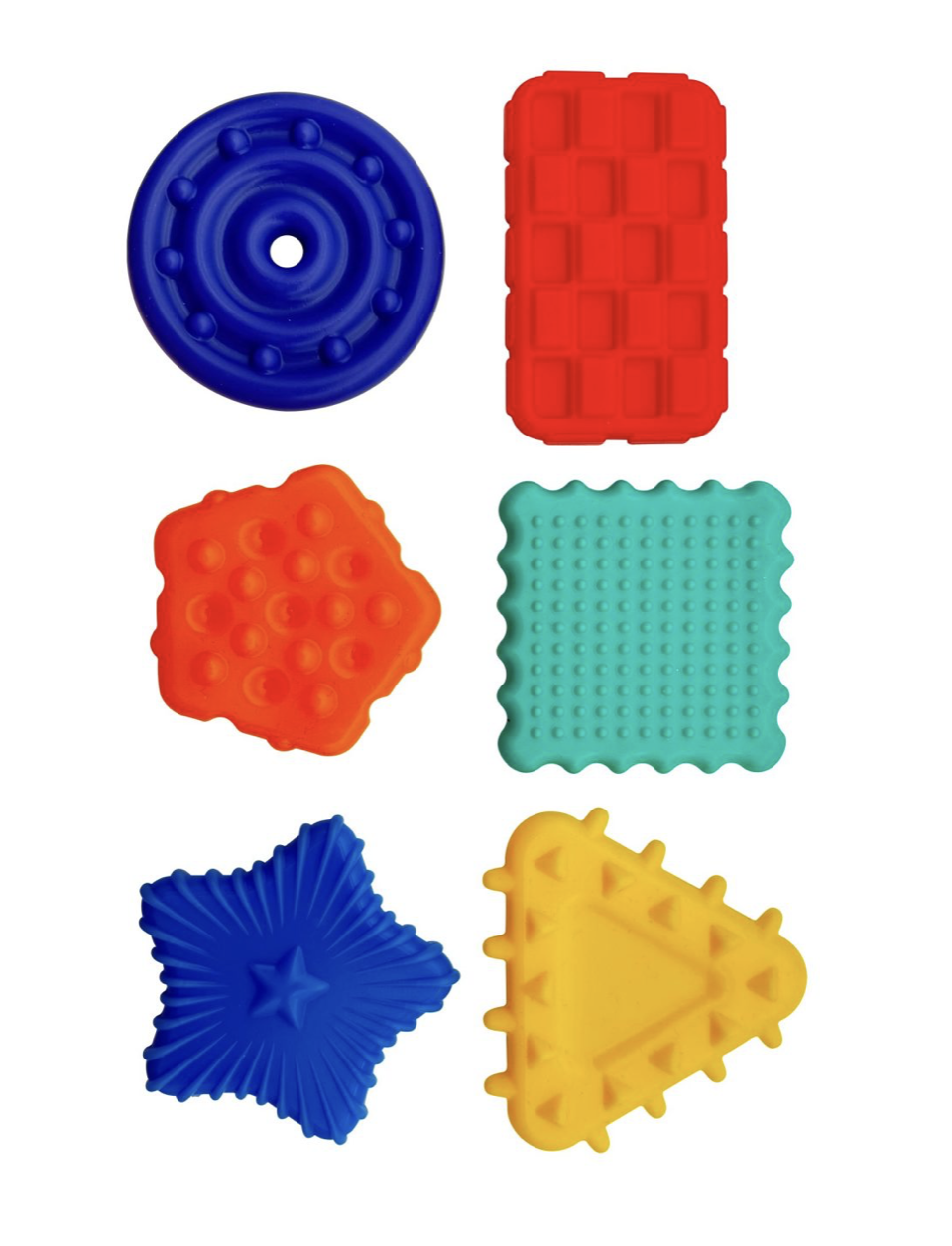Set di 6 forme geometriche gommose con texture diverse: fidget ideali per la classe, grazie alla presenza discreta e silenziosa. Un interessante intrattenimento tattile.