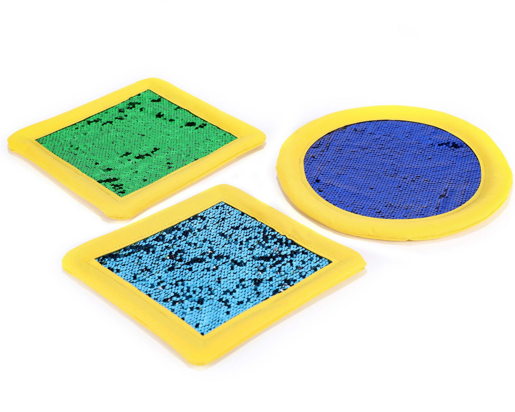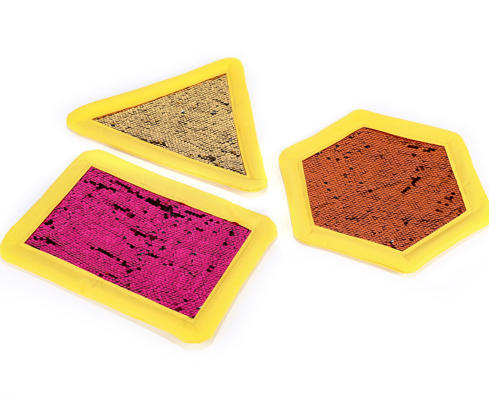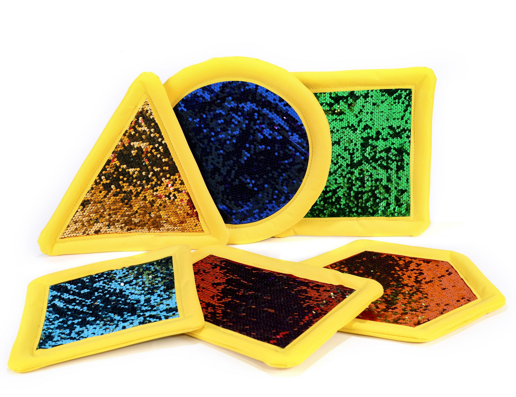 Set di 6 forme geometriche con sequin “girabrilla”, per divertirsi ma anche per giocare a scrivere numeri, lettere, disegnare forme…
