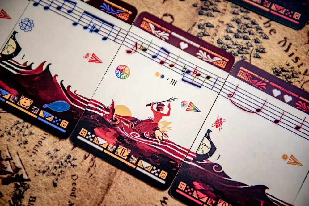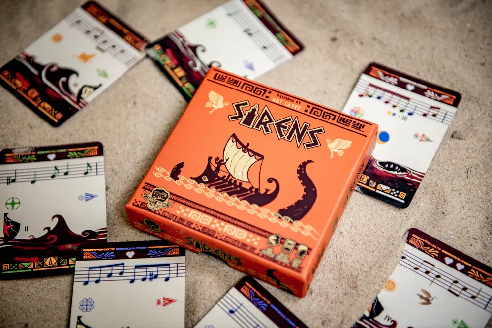 Sirens è un gioco di microdraft veloce e compatto per 1 o 2 giocatori, in cui si pescano carte nel corso di 2 o 3 round per costruire una canzone che attiri i marinai lontano dalla nave vicina. Il giocatore che riesce ad attirare 2 dei 3 marinai con la propria musica vince la partita!