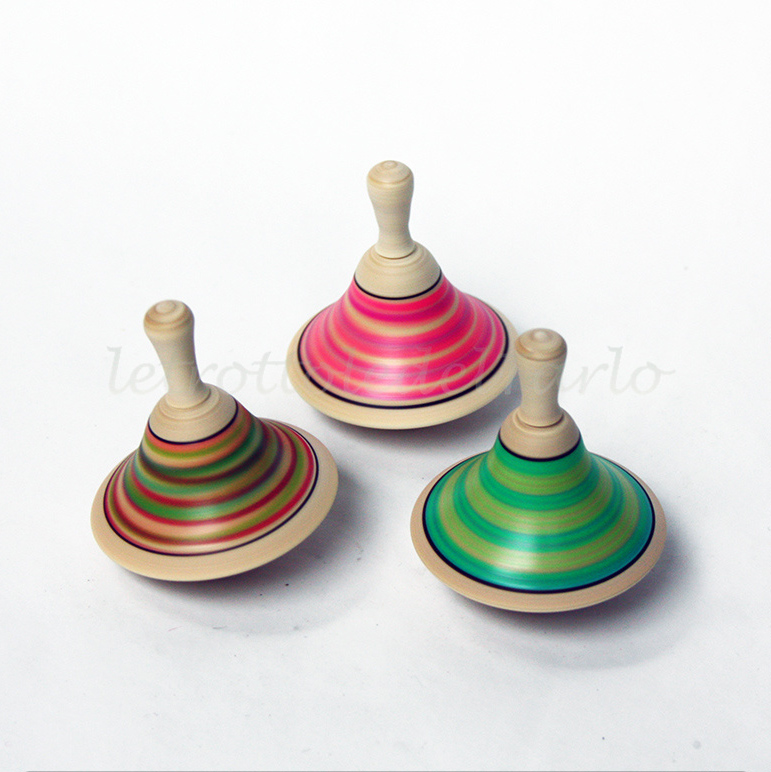 Trottola realizzata e decorata a mano con colori e finitura con vernice fosforescente base acqua