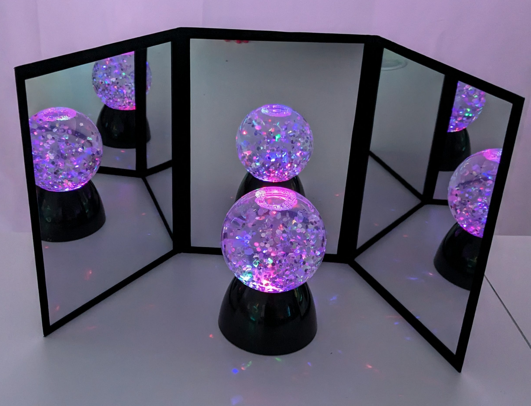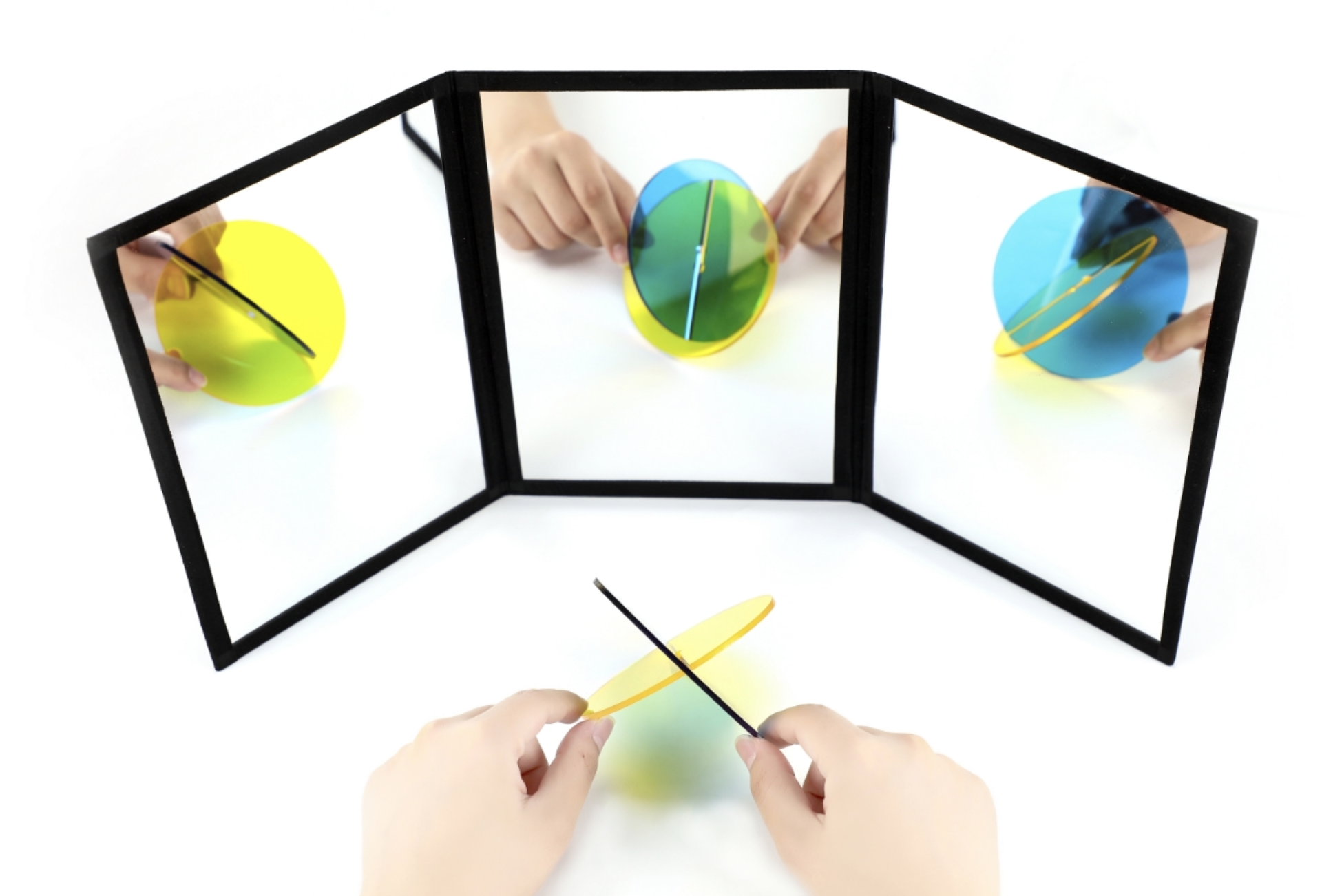 specchio a tre pannelli in formato A4 (ciascun pannello). Questo specchio è ideale da aggiungere a un angolo con tavola luminosa oppure con elementi da costruzione, giochi luminosi… Dai 3 anni