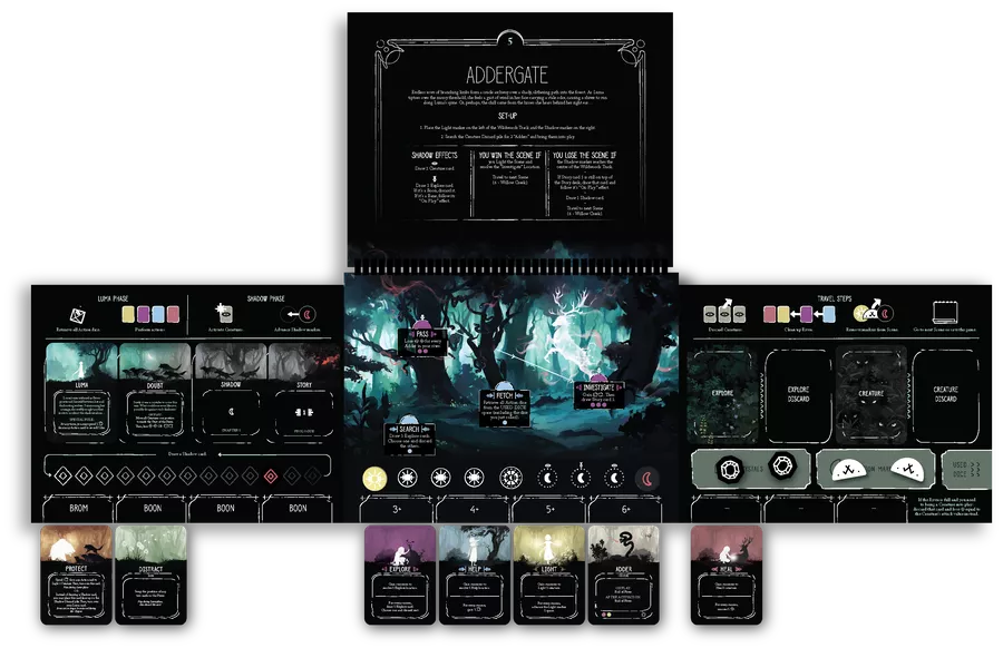 Storyfold: Wildwoods è un innovativo gioco da tavolo d’avventura narrativo e in solitaria, con una splendida grafica e una campagna narrativa coinvolgente.