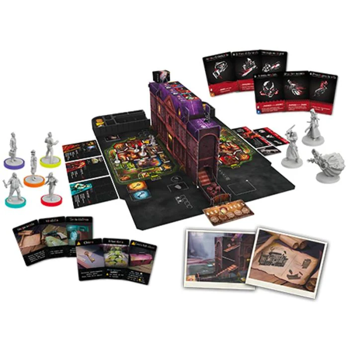 Elementi di Gioco: 1 Schermo con torri lanciadadi, 6 miniature del killer, 5 miniature dei sopravvissuti, 2 plance di gioco, 3 plance del killer, 5 plance dei sopravvissuti, 39 carte abilità del killer, 45 carte oggetto, 2 carte aiuto giocatore, 65 segnalini vari e tessere, 56 carte per le varianti, 4 dadi speciali personalizzati, 5 anelli colorati, 1 regolamento, 1 libretto el killer, 1 libretto dei sopravvissuti, 1 guida di sopravvivenza, 4 vassoi di plastica.