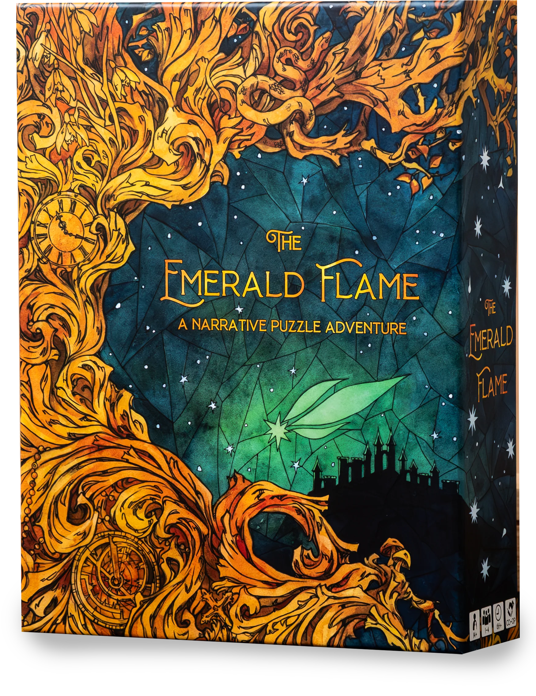The Emerald Flame è un puzzle game narrativo da tavolo raccontato in tre parti. Commissionato da un’organizzazione avvolta nel mistero, i giocatori assumono il ruolo di un esperto storico che si imbarca in una ricerca per mettere insieme la ricetta per un leggendario elisir indagando su mappe, disegni, diagrammi alchemici e misteriosi manufatti. Combinando storia, illustrazioni disegnate a mano, personaggi vivaci ed enigmi originali, The Emerald Flame sfiderà e coinvolgerà giocatori di tutti i livelli di esperienza. Ogni sessione richiede circa 1,5-3 ore per essere completata, per un gruppo di dimensioni consigliate di 1-4 persone. Dal creatore dell’avventura puzzle “insidiosamente intelligente” The Tale of Ord, The Emerald Flame è una nuova epopea per i fan di escape room, serate di gioco e “non solo giochi ma… esperienze”.