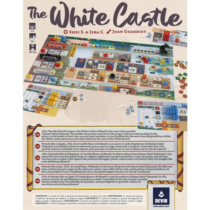 Il Castello Bianco di Himeji è la dimora del potente Daimyo Sakai Tadazumi. I clan minori devono recarsi in questo luogo se vogliono migliorare la propria posizione a corte. In quanto capo del clan, riuscirai a far accedere i tuoi seguaci alle posizioni di maggior potere, assicurando così il futuro della tua famiglia alla corte dell’Airone Bianco?