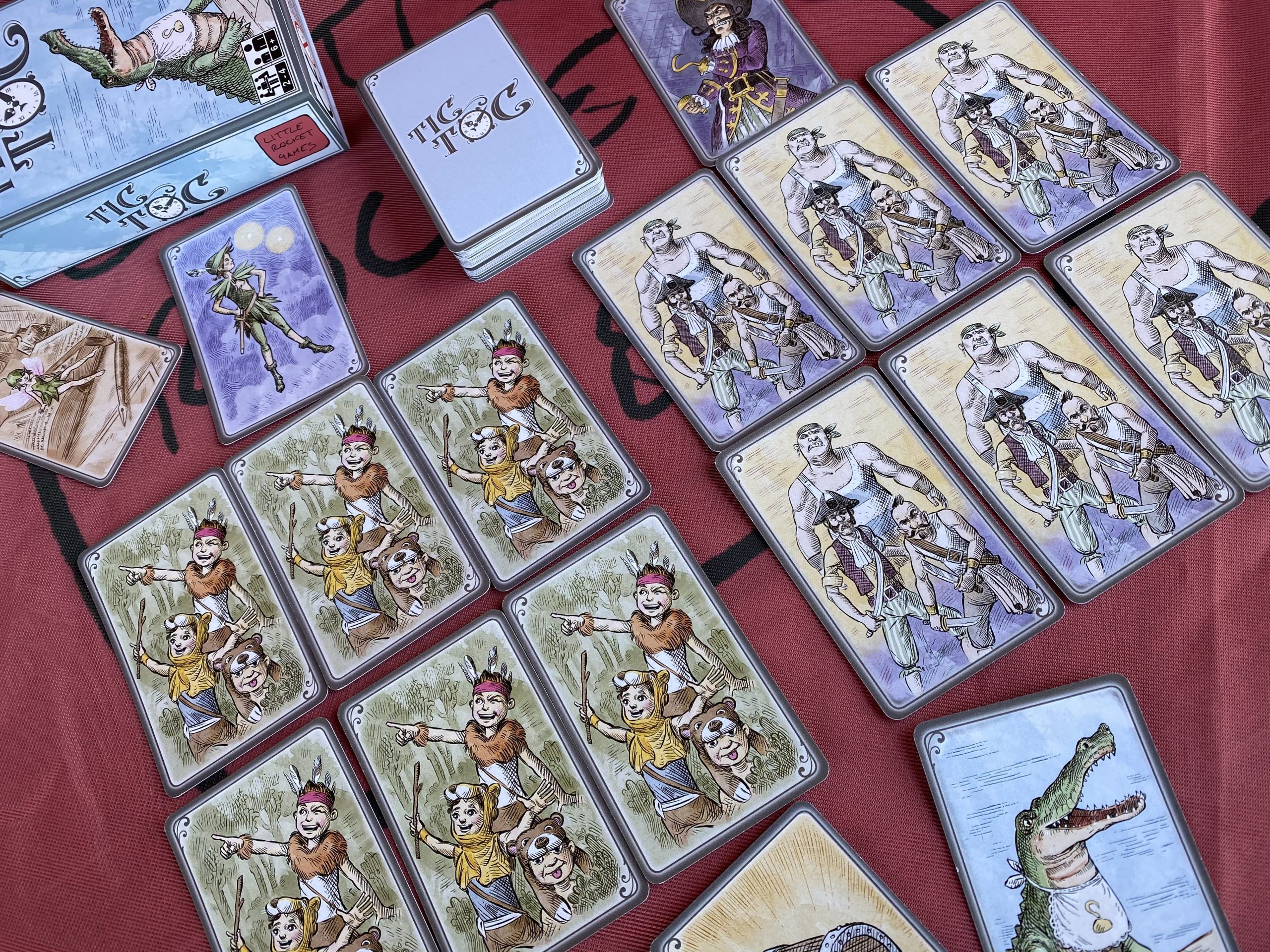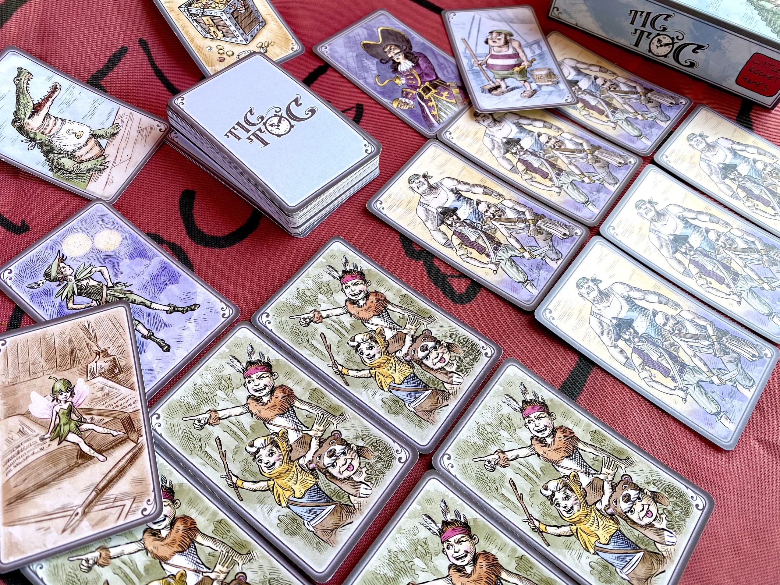 Pescate carte, mettete sul tavolo la vostra squadra fino a riuscire ad avere Peter Pan con 6 carte Bimbi Sperduti o Capitan Uncino con 6 carte Ciurma. Ma attenzione a Spugna che vi porterà via la vostra squadra dei buoni o a Tic Toc che farà scappare la vostra squadra dei cattivi. Niente paura, il Tesoro dei Pirati e Campanellino verranno in vostro aiuto…