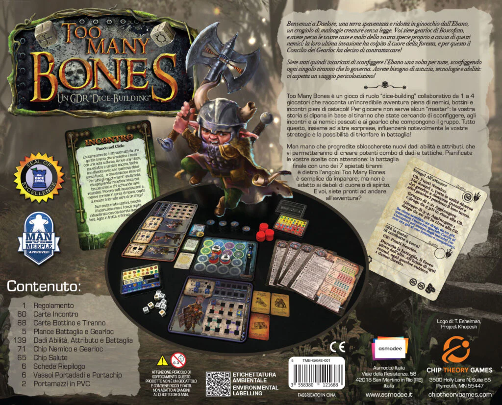 Too Many Bones è un gioco di avventura “dice-building” collaborativo.