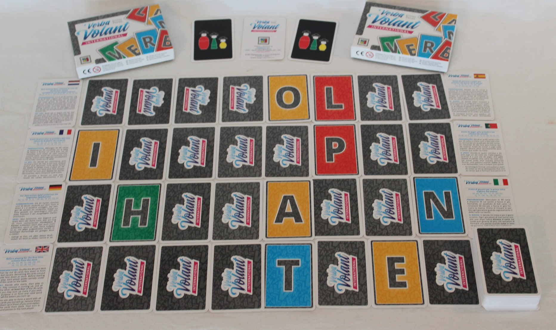 Si gioca con un mazzo di 102 carte che riportano 100 lettere adeguatamente selezionate per poter giocare in 7 lingue diverse con l’aggiunta di 2 carte Jolly che possono rappresentare qualsiasi lettera.