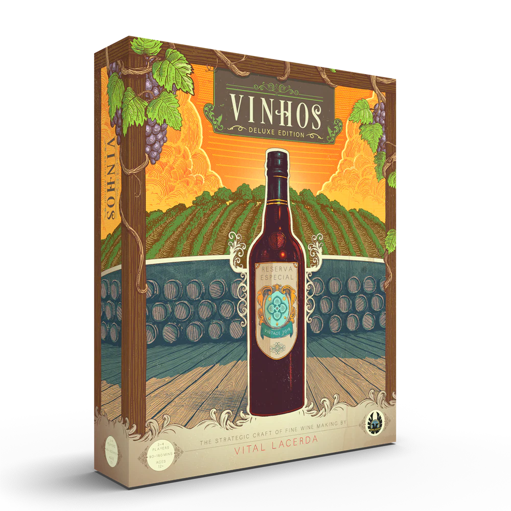L’Edizione Deluxe di Vinhos è un gioco strategico per 1-4 giocatori che dura circa 30-45 minuti per ogni giocatore. La versione qui venduta contiene anche il regolamento, il libretto di referenze e i fogli aiuto in inglese in aggiunta ai normali componenti di gioco.